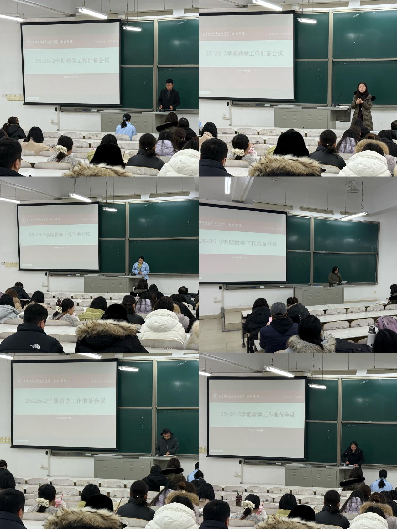 会上,会计学系、财务管理系、审计学系系主任分别汇报了寒假工作成果及新学期计划,提出强化系部协同,统筹推进重点工作;院长助理汪蕾就教学工作提出要求,强调严守师德底线、优化课堂设计、精心筹备“开学第一课”;院长助理张玉岭对科研工作作出部署,提出要聚焦智能审计、大数据财务等核心领域、强化产学研融合创新;办公室主任杨璐就教学管理与行政事务作具体安排,要求教师做好教学任务核对、及时查看通知并规范沟通流程,保障教学运行高效有序。