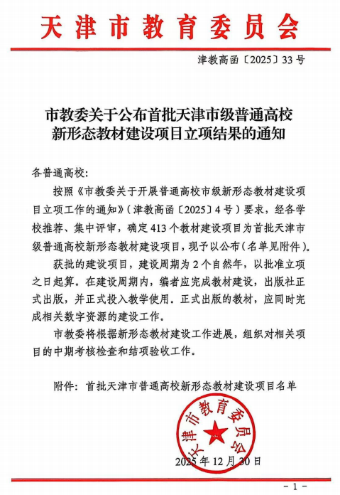 近日,天津市教委公布了首批天津市级普通高校新形态教材建设项目立项名单,会计学院徐立文副教授申报的《会计信息系统实验教程》成功获批立项。此次入选标志着会计学院在新形态教材建设领域取得重要突破。